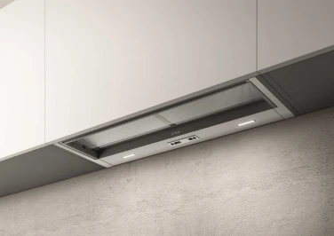 This built-in hood, boasting an essential design, is engineered to be fully hidden in the cabinet. It features a front shield, which directs vapour through the extraction area, to protect the cabinet door.